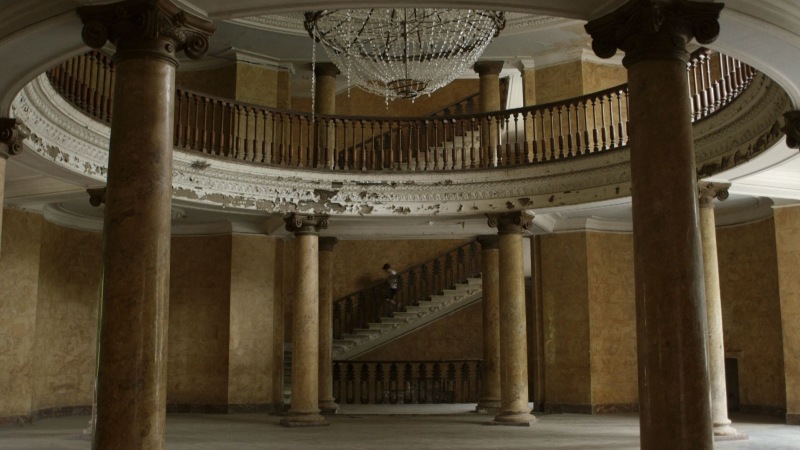 Georgia’s Ministry of Culture has labelled Chachia and Voigt’s film a fraudulent project. In response to this and similar attacks on other filmmakers, the Georgian film community launched the initiative Georgian Cinema Is in Danger and began to self-organize independently of the Georgian National Film Center. Alongside dismantling the myth of life in Soviet Georgia as a lived utopia, as well the myth of an anticipated one in the present day, the film employs a range of rare techniques that estrange the imperial building from its oddly improvised practical functions. The camera’s gaze on the architecture is often oblique rather than frontal, favouring diagonal angles. Shots are at times also deliberately blurred to evoke a disoriented state of mind, while the director addresses the sanatorium in the first person.